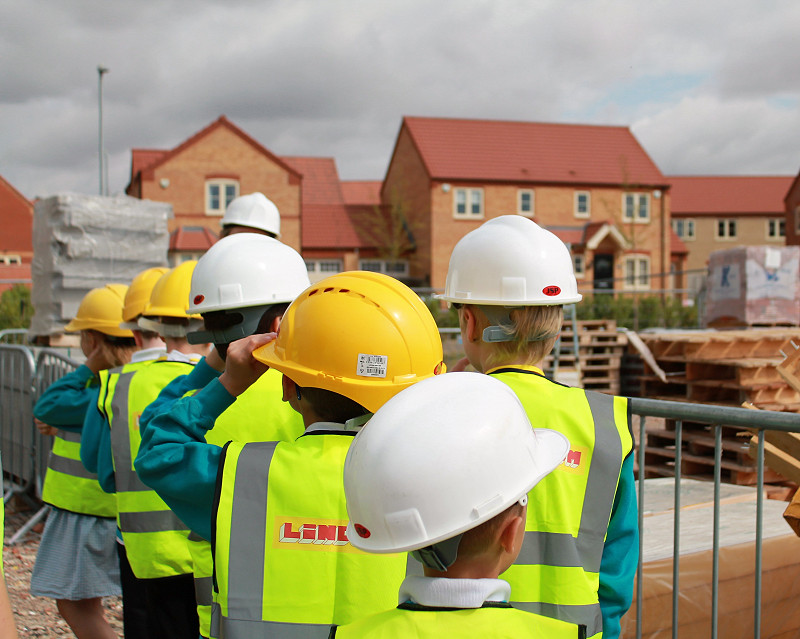 Children were made aware of dangers of a construction site, the skills needed to construct a building such as Roman Gate Court and turned their hand to bricklaying.