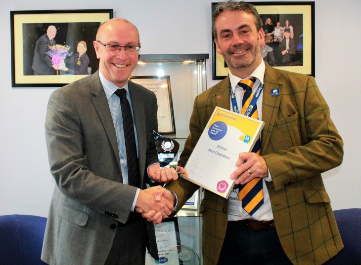 Chris Wheway, Chief Executive of St Barnabas Lincolnshire Hospice, popped in last week to present Nick Chambers with the St Barnabas Lincolnshire Hospice Chief Executive Award 2017.